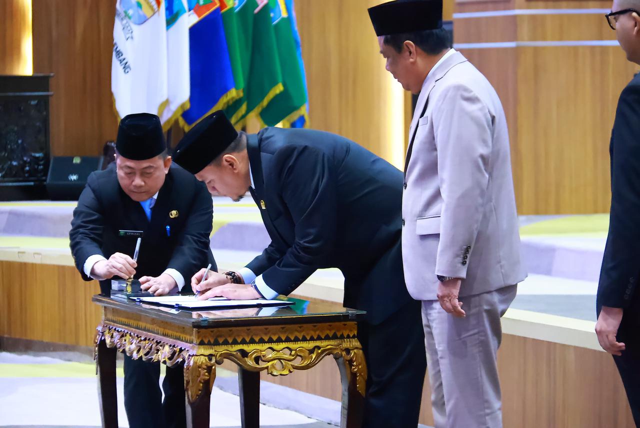 Sebagai penutup agenda rapat, Wakil Gubernur Sumsel H. Cik Ujang bersama Ketua DPRD Provinsi Sumsel Andie Dinialdie menandatangani keputusan DPRD Provinsi Sumsel sebagai tanda disahkannya pembentukan Pansus Optimalisasi Pendapatan Daerah.(Red)
