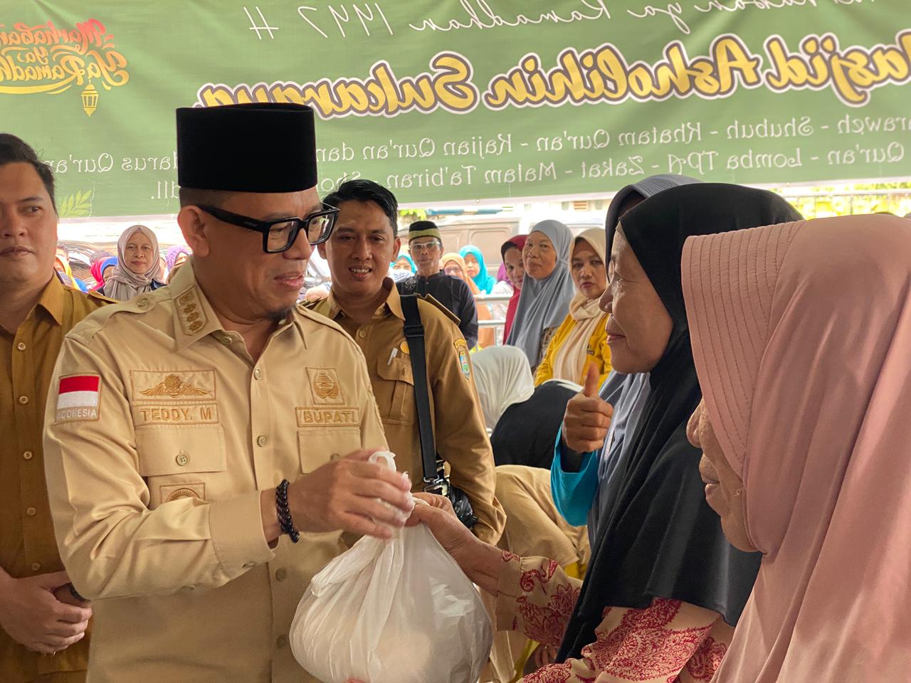 “Pemerintah daerah hadir di tengah masyarakat. Kita ingin sedikit membantu meringankan beban masyarakat dalam memenuhi kebutuhan menjelang Hari Raya Idulfitri,” ujar Teddy dalam sambutannya.